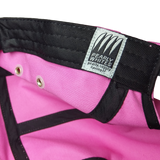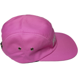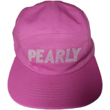 A classic 5-panel cap in pink, with an embroidered Pearly logo & leather strap.