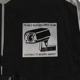 Print on the back translates to "Pearly Whites Surveillance Team" in PTEXT, an alphabet created for use within the PW products.